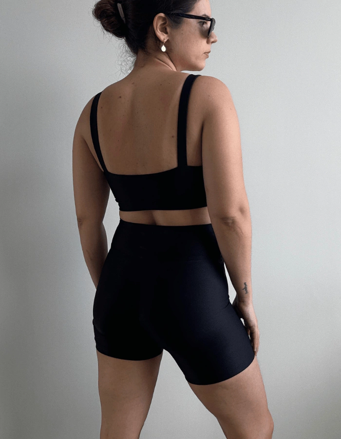 Top com alças em elástico interno e base para sustentação. Peça forrada